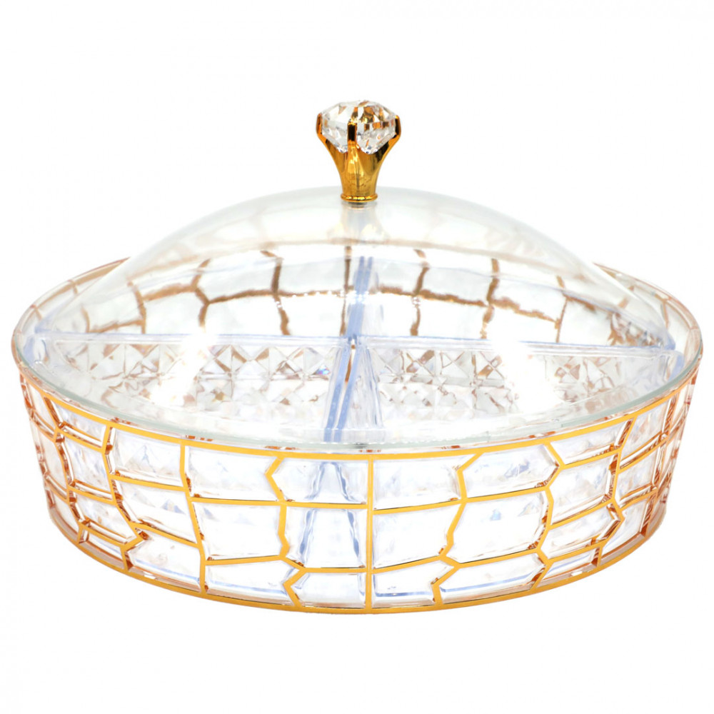 صينية تقديم اكريلك دائريه بغطاء بخطوط ذهبيه